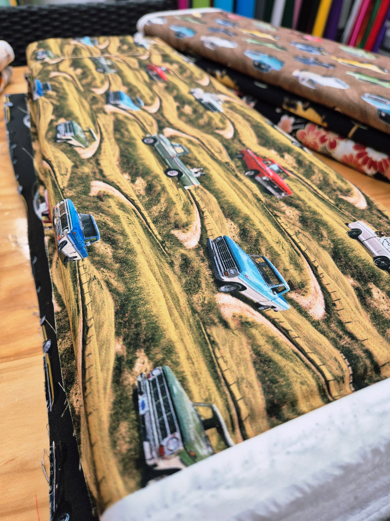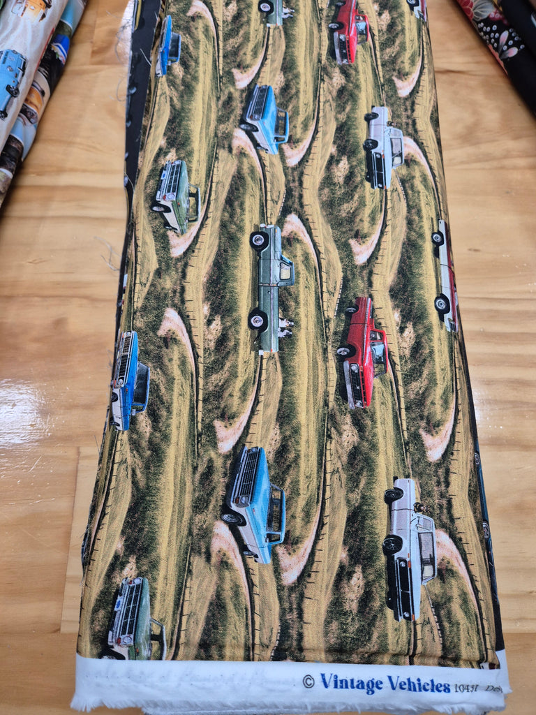 Another exciting collection by Milvale Design Studio featuring classic vintage automobiles. Find yourself back in the 60s and 70s with this classic range exploring old utes and muscle cars. This is a range to be loved by all fanatics of the well-known motor company and is well suited for projects from quilts to apparel.